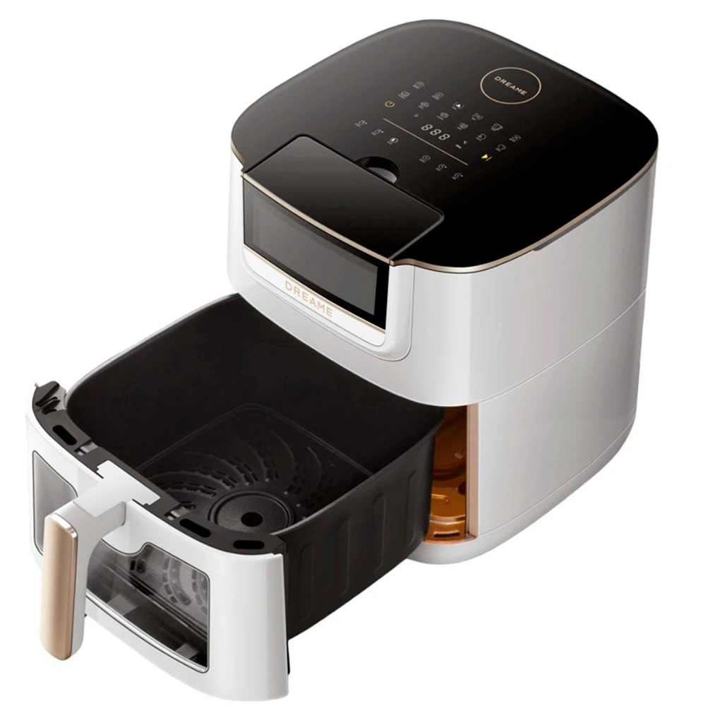 Аэрогриль Dreame AF30 White оснащён чашей на 7 литров с керамическим антипригарным покрытием, мощностью 2300 Вт и 12 автоматическими программами. Поддерживает температуру от 50 до 200 °C, равномерно готовит за счёт циркуляции воздуха на 360°.