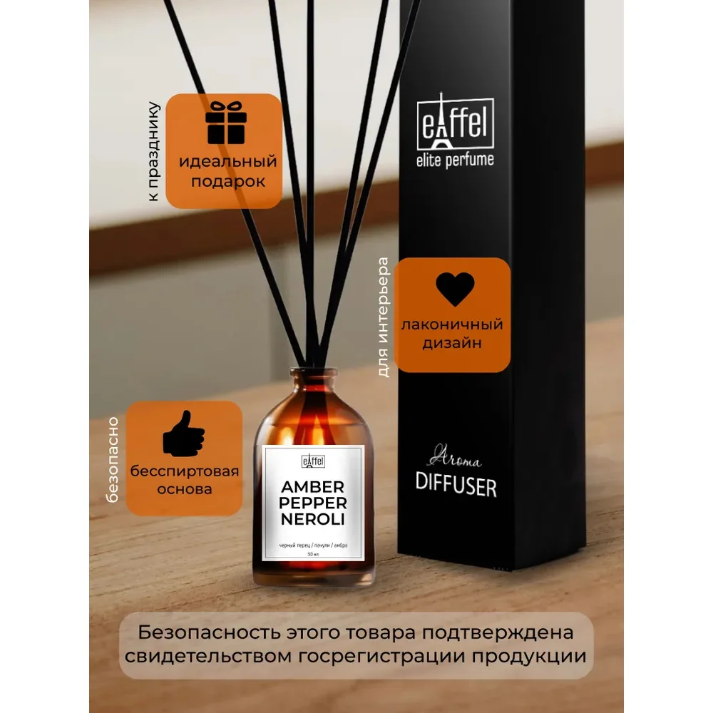Ароматический диффузор для дома EIFFELAROMA Dif50-11 Black Pepper neroli ambra 50 мл
