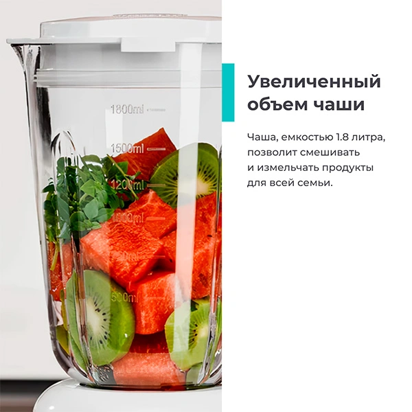 Чаша объемом 1,8 литра, съемный нож, крышка