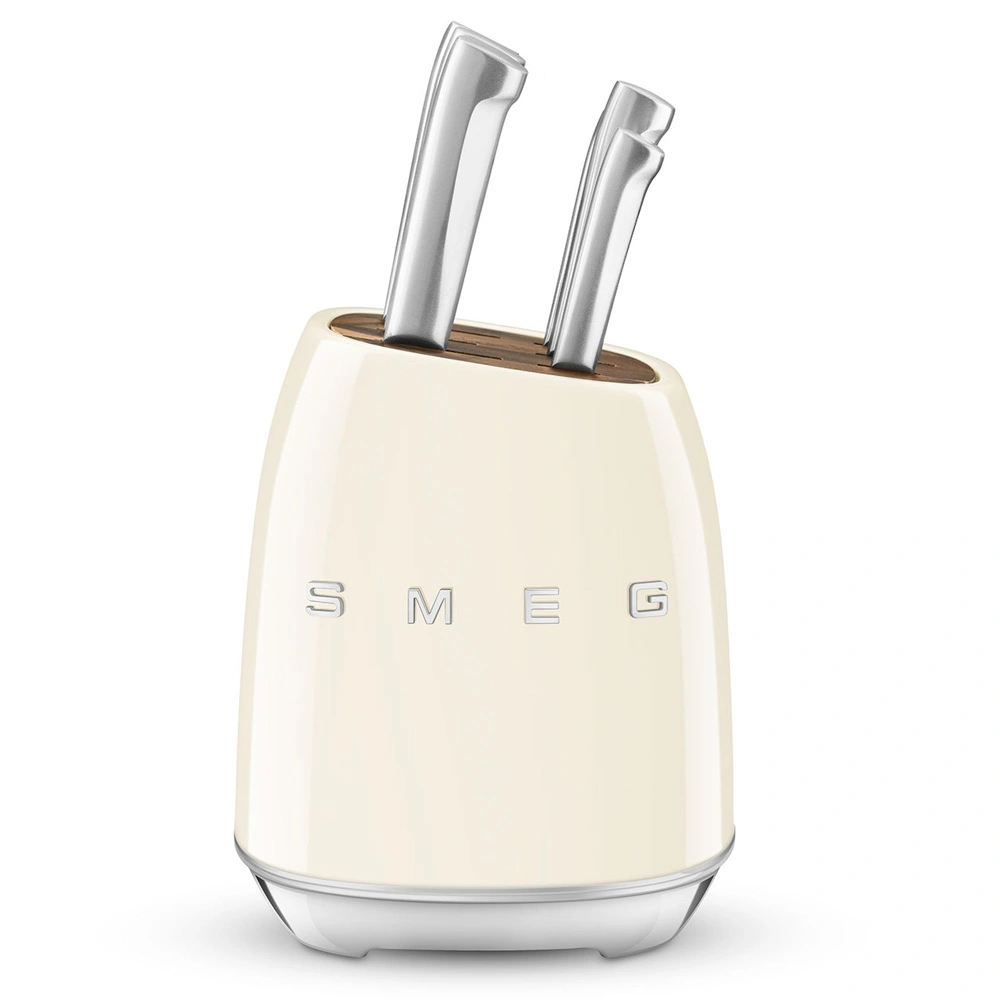 Комплект ножей Smeg включает шесть ножей, каждый из которых имеет свое предназначение и идеально справляется с задачами, от нарезки овощей до разделки мяса. Все ножи литые, что свидетельствует о высоком качестве изготовления и обеспечивает дополнительную долговечность. Подставка, входящая в комплект, не только обеспечивает удобное хранение ножей, но и добавляет элегантности вашей кухне.