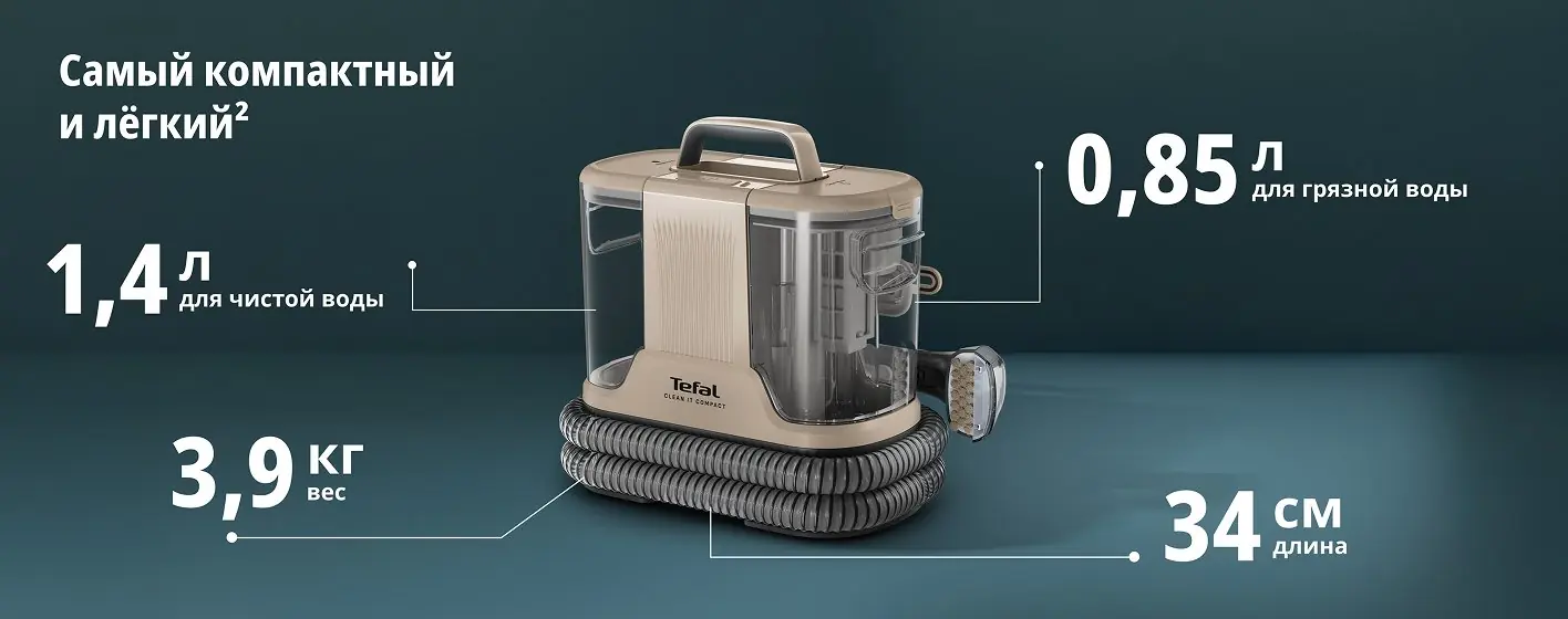Моющий пылесос для чистки мебели, текстиля и ковров Tefal Clean IT IZ3010F0