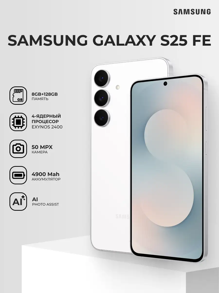 Комплект Смартфон Samsung Galaxy S25 FE 5G 8/128GB White + Адаптер ARG 25W Black (ARGTB701)