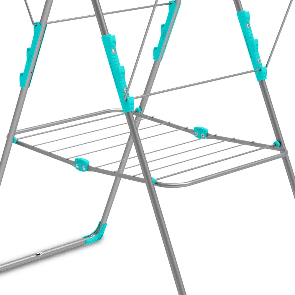 Напольная, складная , Распашные створки с поперечным и продольным расположением сушильных прутьев , Дополнительная полка для сушки белья, длина сушильного полотна-21м,