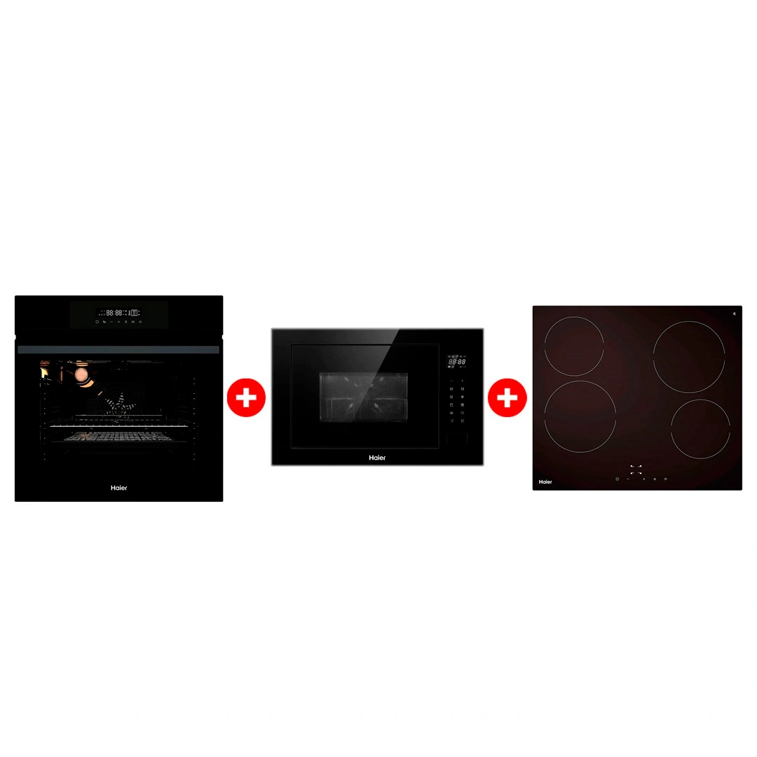 Жиынтық Стеклокерамическая варочная поверхность Haier HHY-C64NVTB + Haier кіріктірілетін микротолқынды пеші HMX-BTG259B + Haier кіріктірілетін тұмша шкафы HOX-FP3AGB