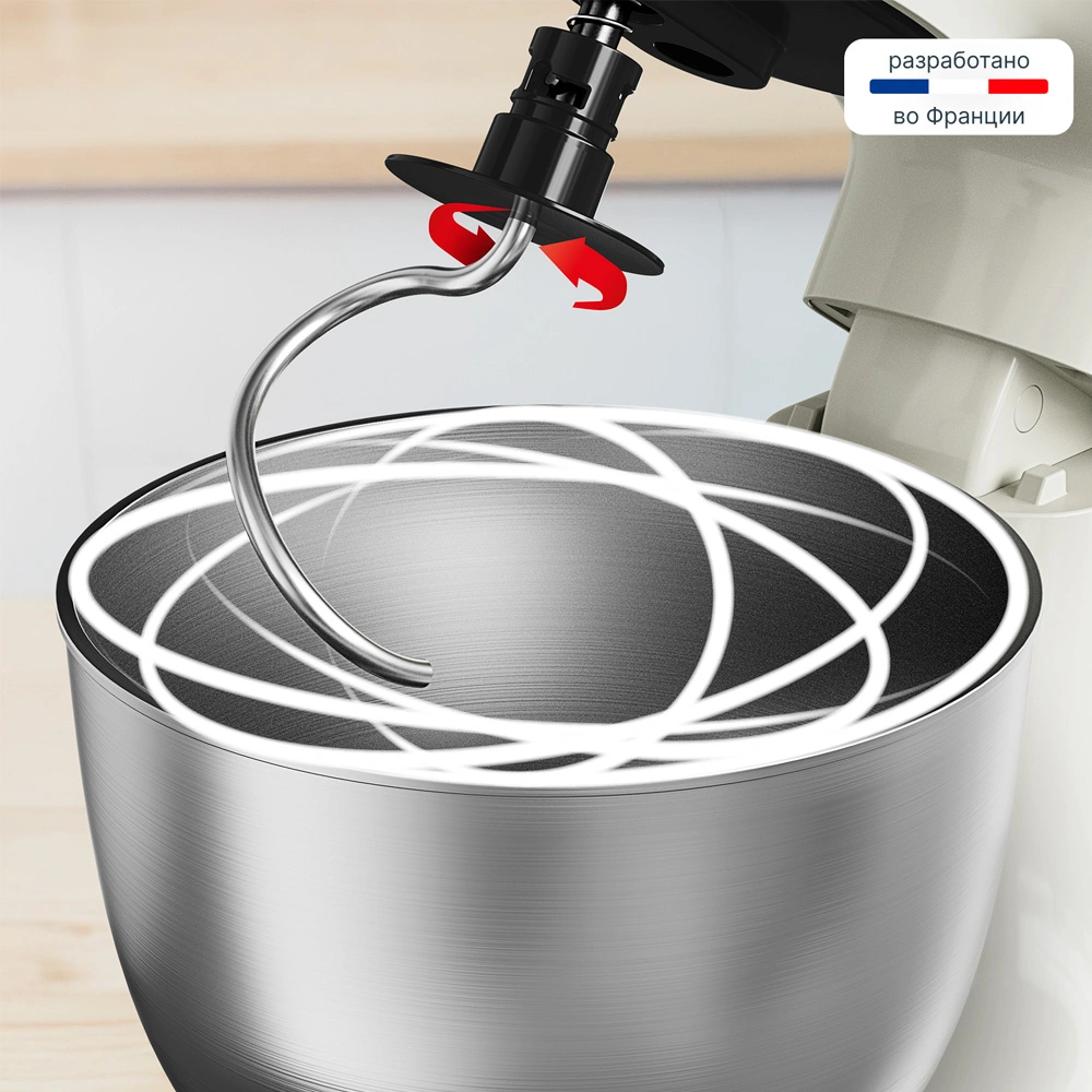 Терең тостаған 3,5 л. 3 саптама: шайқау, қамыр саптамасы, қалың қамыр ілгегі, планеталық араластырғыш