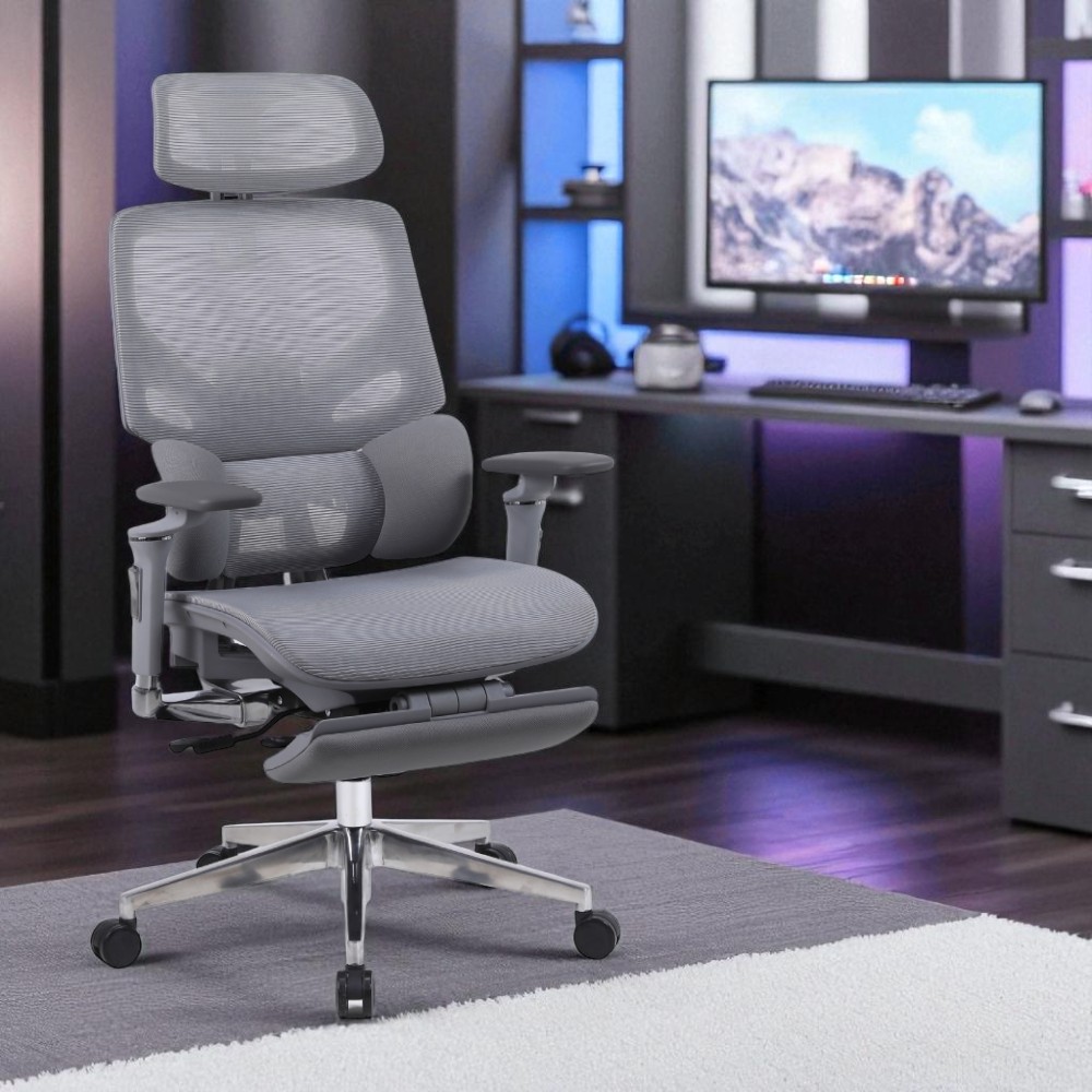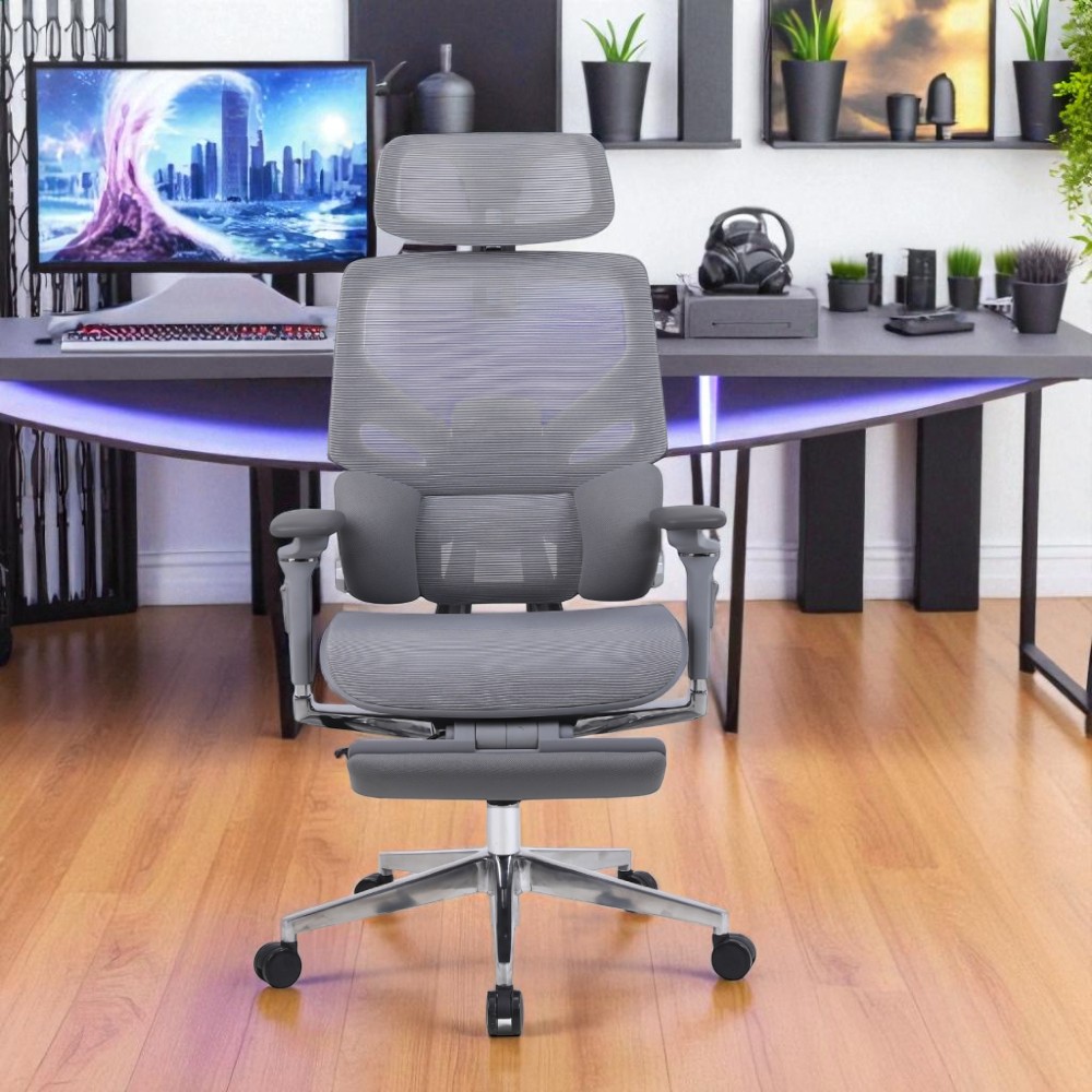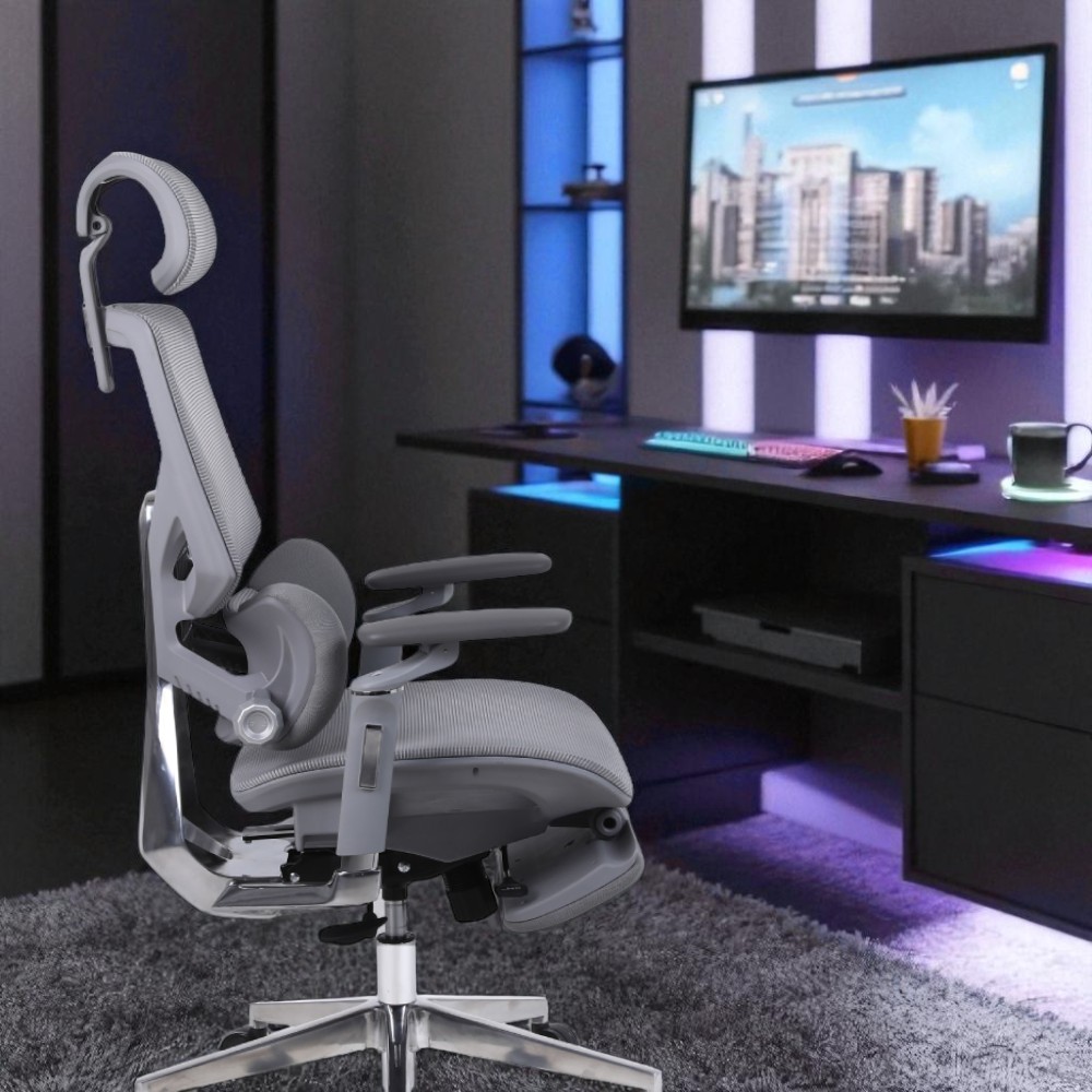 Креслоның қаптамасы мен арқалығы тордан жасалған, бұл керемет желдетуді және тіпті ыстық күндерде жайлылықты қамтамасыз етеді. Нейлоннан жасалған тіректері бес бағытта реттеледі және қолдардың табиғи жағдайын қолдайды, буындарға жүктемені азайтады. 80 мм жүрісі бар газлифт механизмі орындықтың биіктігін 44.5 см-ден 52 см-ге дейін оңай реттеуге мүмкіндік береді, бұл пайдаланушының жеке қалауы бойынша бейімделеді.
